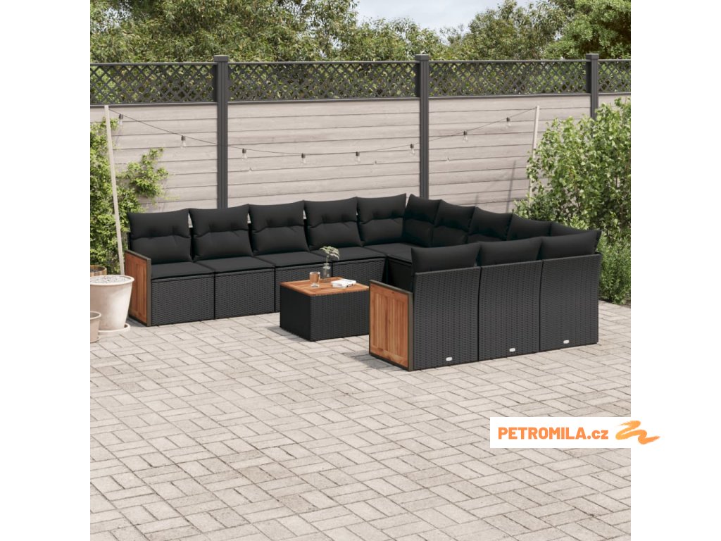 12dílná zahradní sedací souprava s poduškami černá polyratan