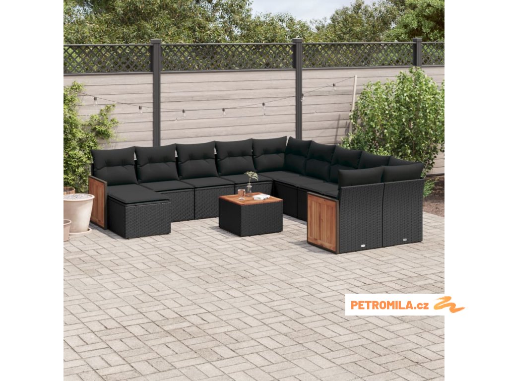 12dílná zahradní sedací souprava s poduškami černá polyratan
