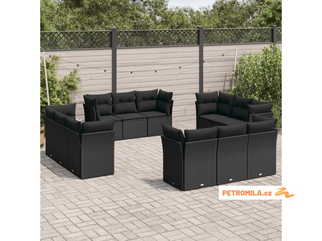 12dílná zahradní sedací souprava s poduškami černá polyratan