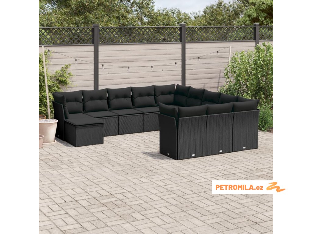 12dílná zahradní sedací souprava s poduškami černá polyratan