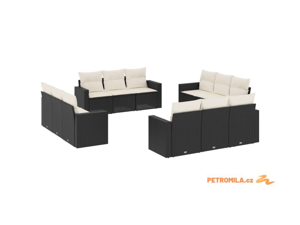 12dílná zahradní sedací souprava s poduškami černá polyratan