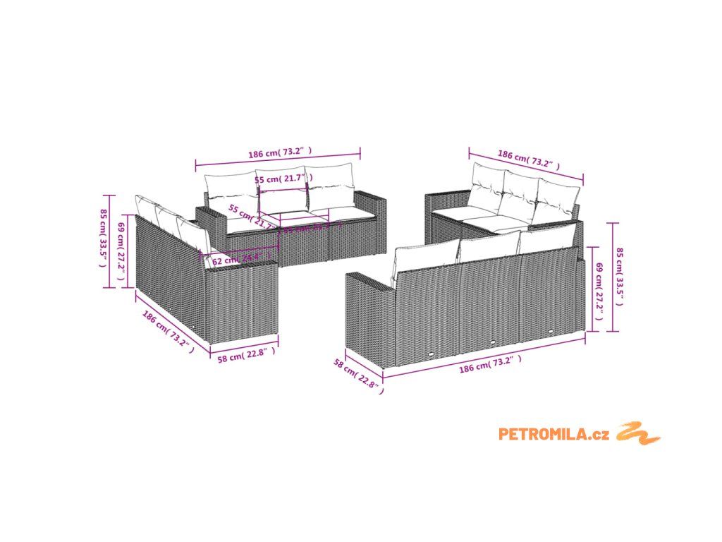 Tato zahradní sedací souprava je dokonalým doplňkem vaší zahrady, terasy nebo dvorku a poskytne vám pohodlné a příjemné místo, kde si můžete povídat s rodinou a přáteli nebo jen tak odpočívat a užívat si pobyt venku.