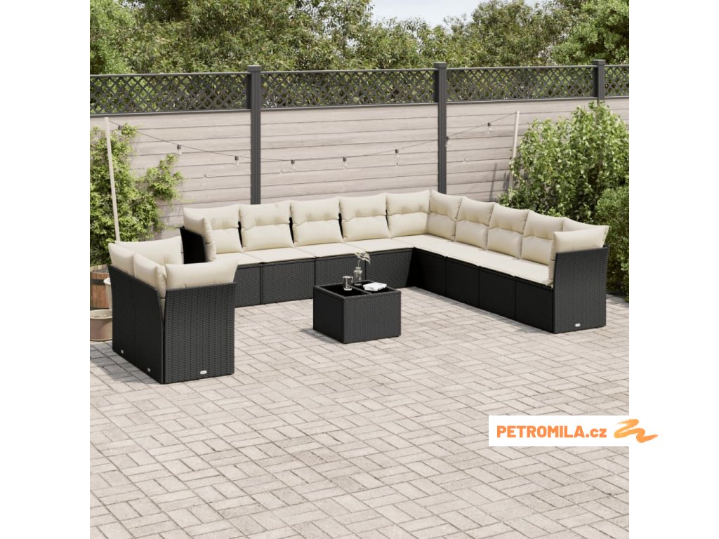 12dílná zahradní sedací souprava s poduškami černá polyratan