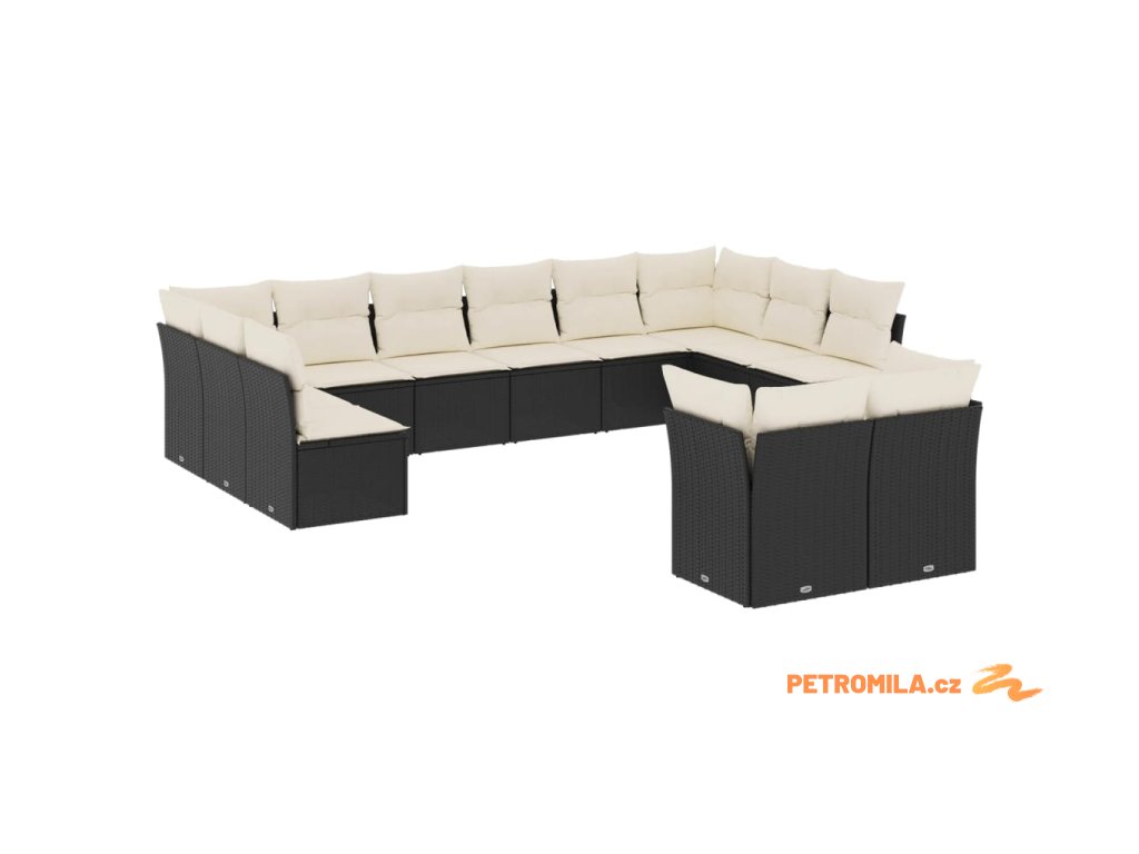 12dílná zahradní sedací souprava s poduškami černá polyratan