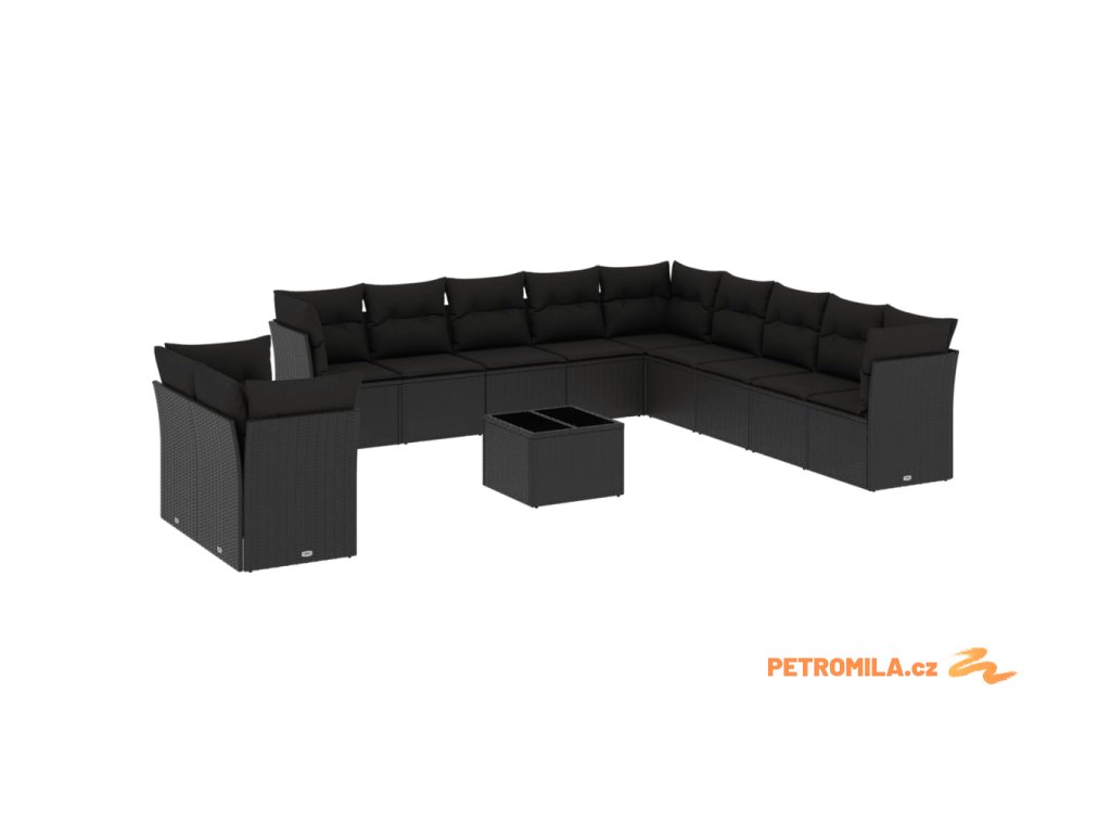 12dílná zahradní sedací souprava s poduškami černá polyratan