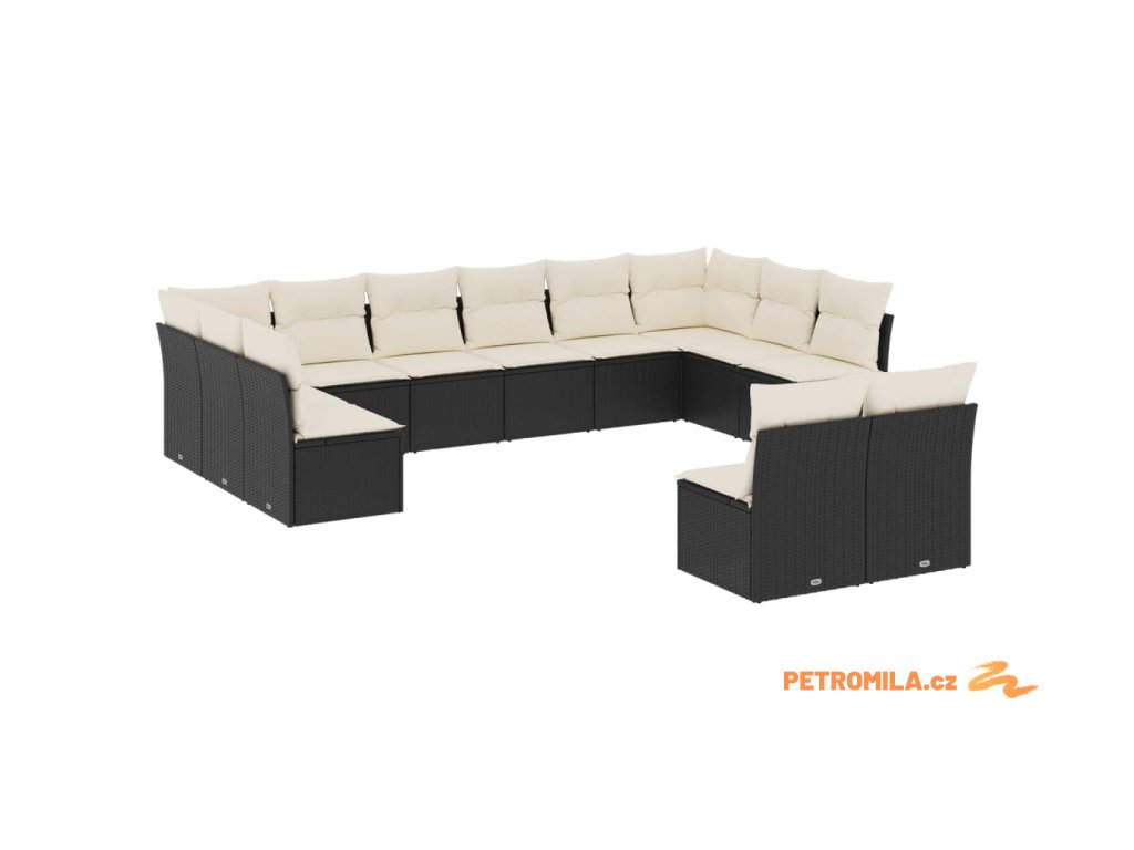 12dílná zahradní sedací souprava s poduškami černá polyratan