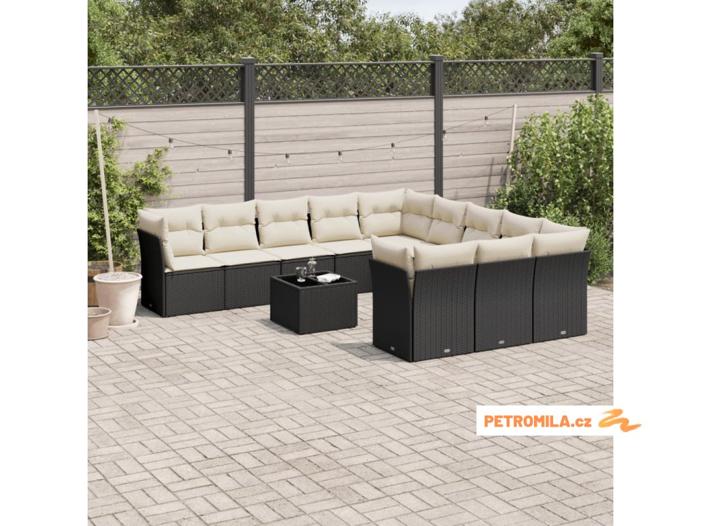 12dílná zahradní sedací souprava s poduškami černá polyratan