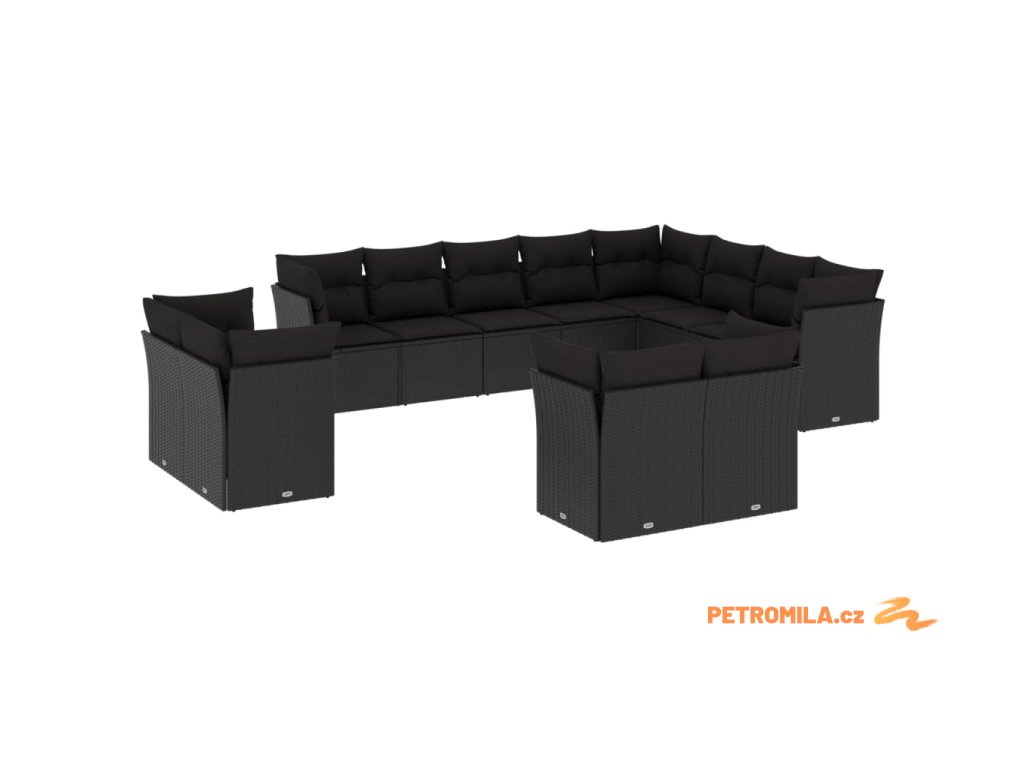 12dílná zahradní sedací souprava s poduškami černá polyratan