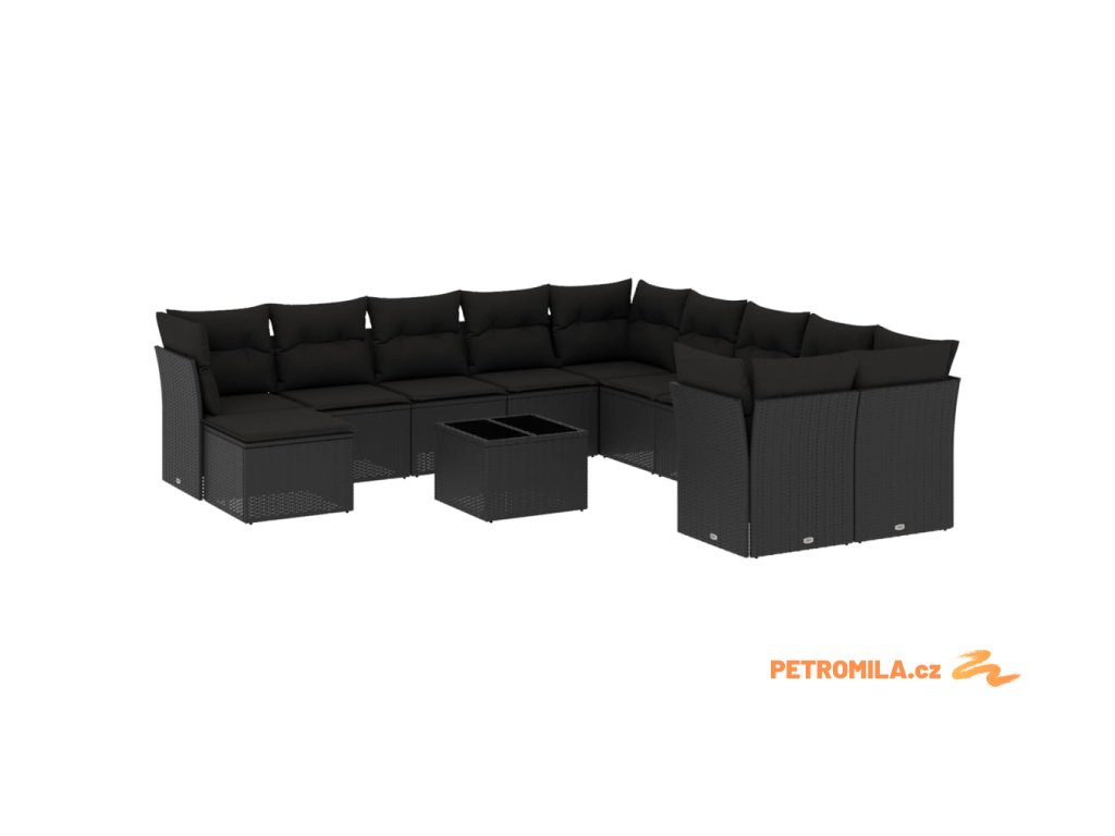 12dílná zahradní sedací souprava s poduškami černá polyratan