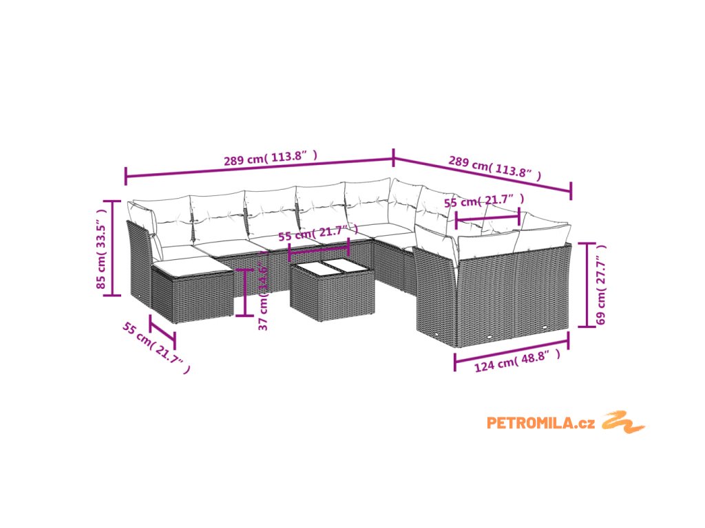 - 11 x poduška na sedák s odnímatelným a pratelným potahem