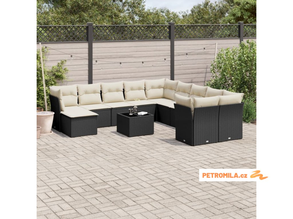 12dílná zahradní sedací souprava s poduškami černá polyratan