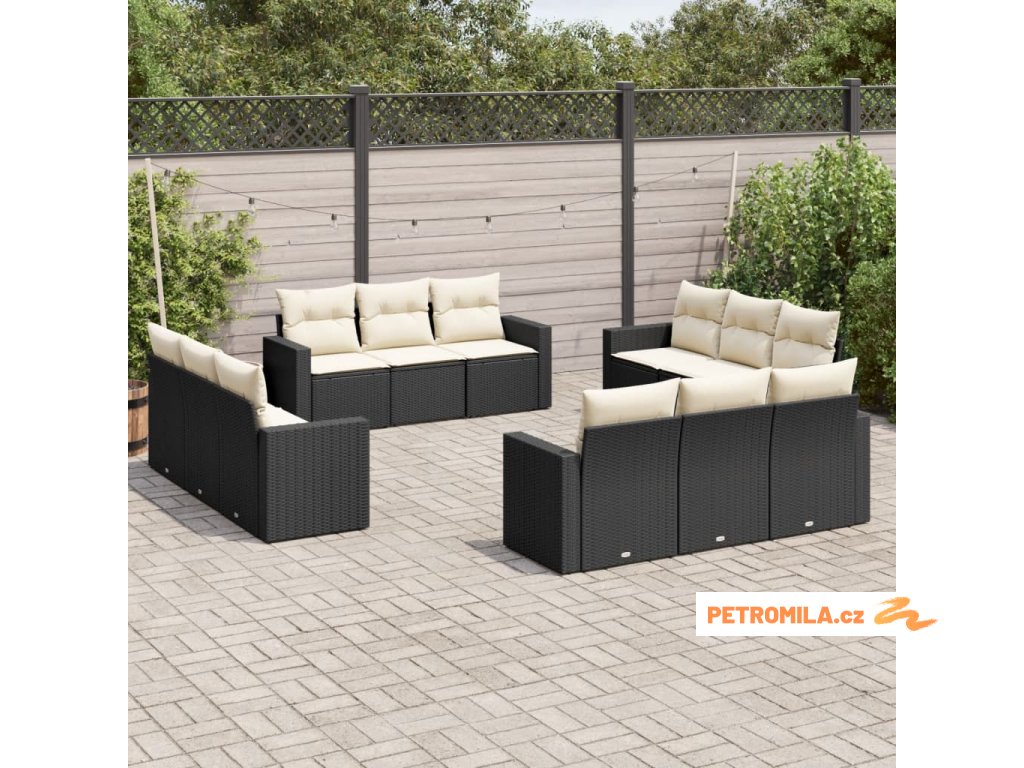 12dílná zahradní sedací souprava s poduškami černá polyratan