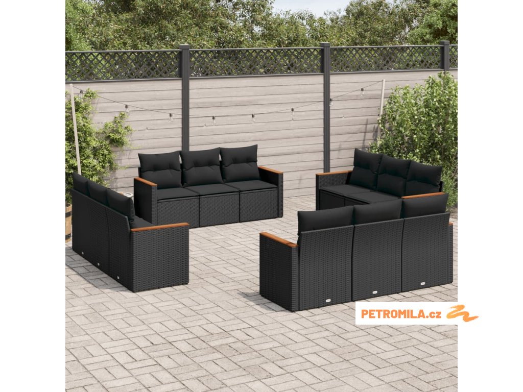 12dílná zahradní sedací souprava s poduškami černá polyratan
