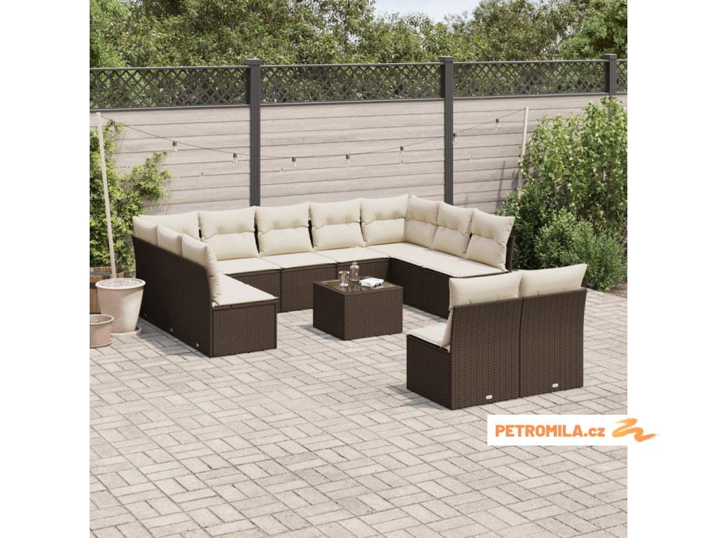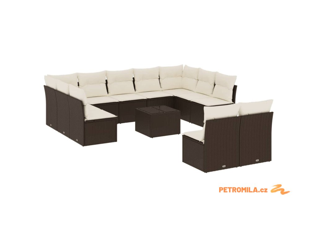 12dílná zahradní sedací souprava s poduškami hnědá polyratan