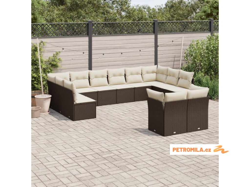 12dílná zahradní sedací souprava s poduškami hnědá polyratan