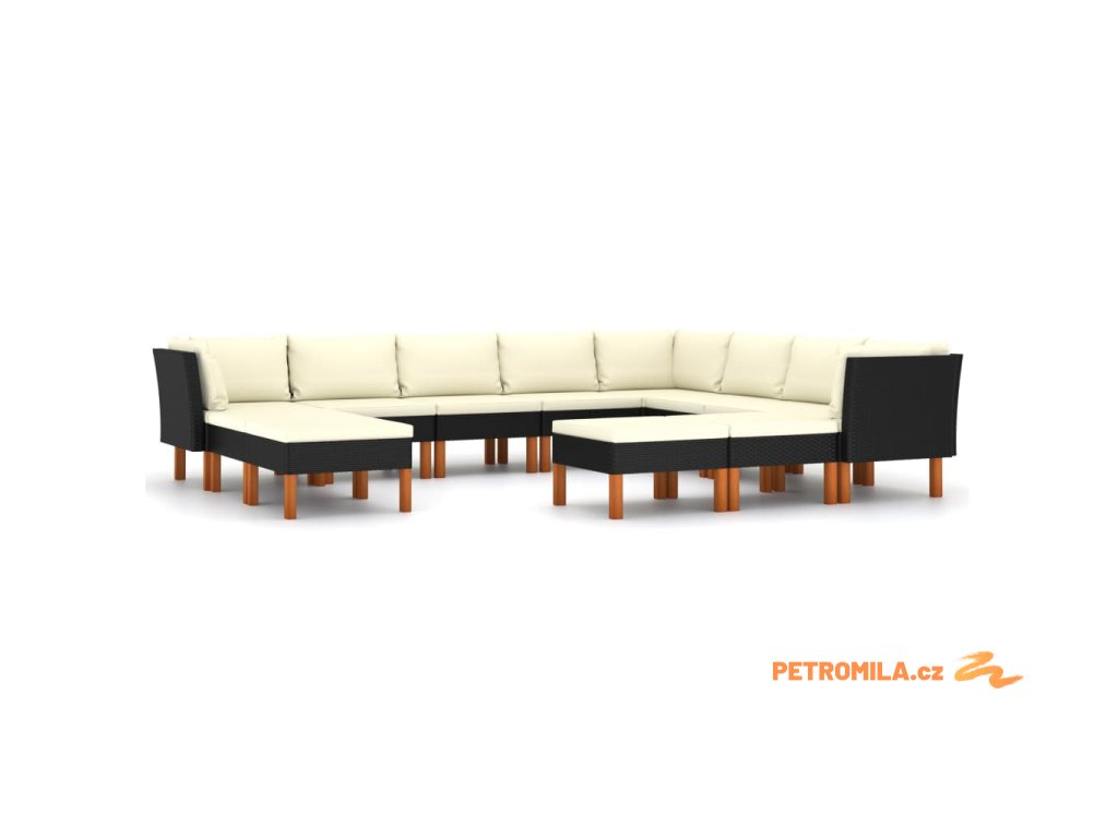 12dílná zahradní sedací souprava s poduškami polyratan černá