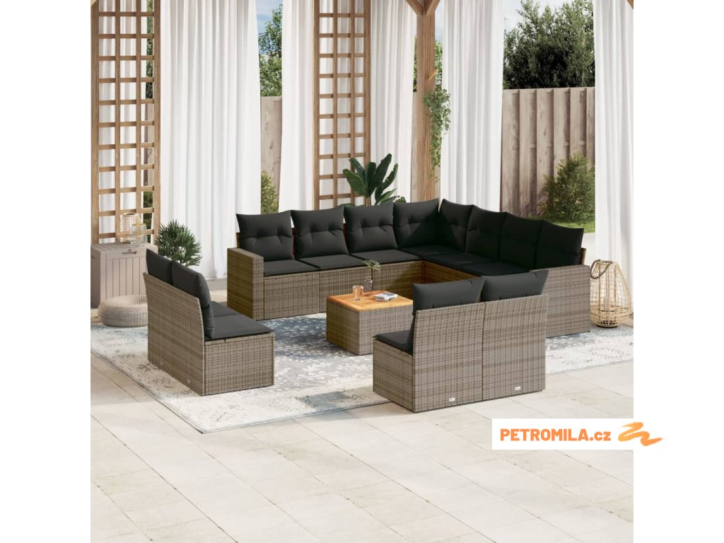 12dílná zahradní sedací souprava s poduškami šedá polyratan
