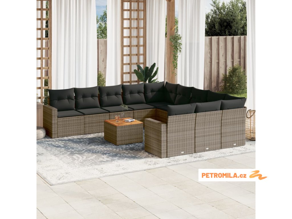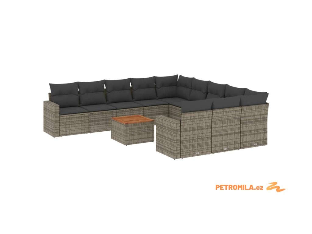 12dílná zahradní sedací souprava s poduškami šedá polyratan