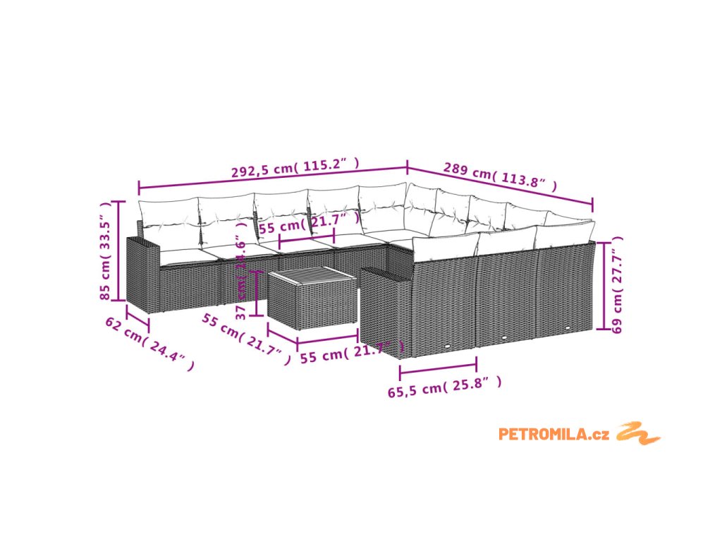 Tato zahradní sedací souprava je dokonalým doplňkem vaší zahrady, terasy nebo dvorku a poskytne vám pohodlné a příjemné místo, kde si můžete povídat s rodinou a přáteli nebo jen tak odpočívat a užívat si pobyt venku.