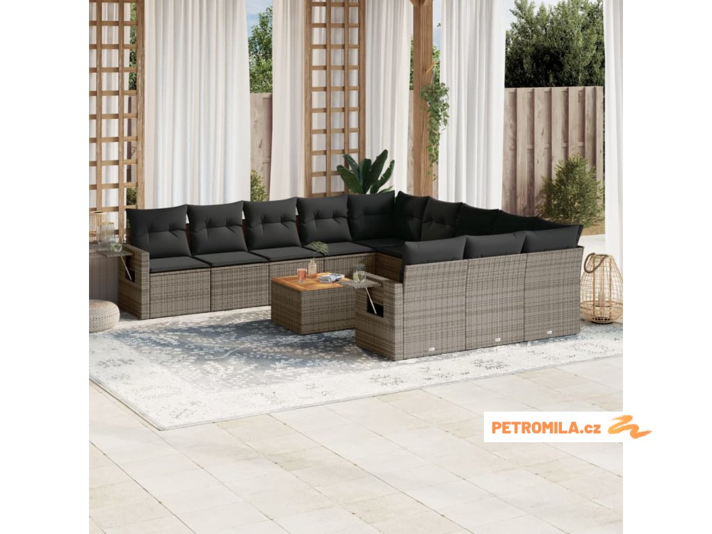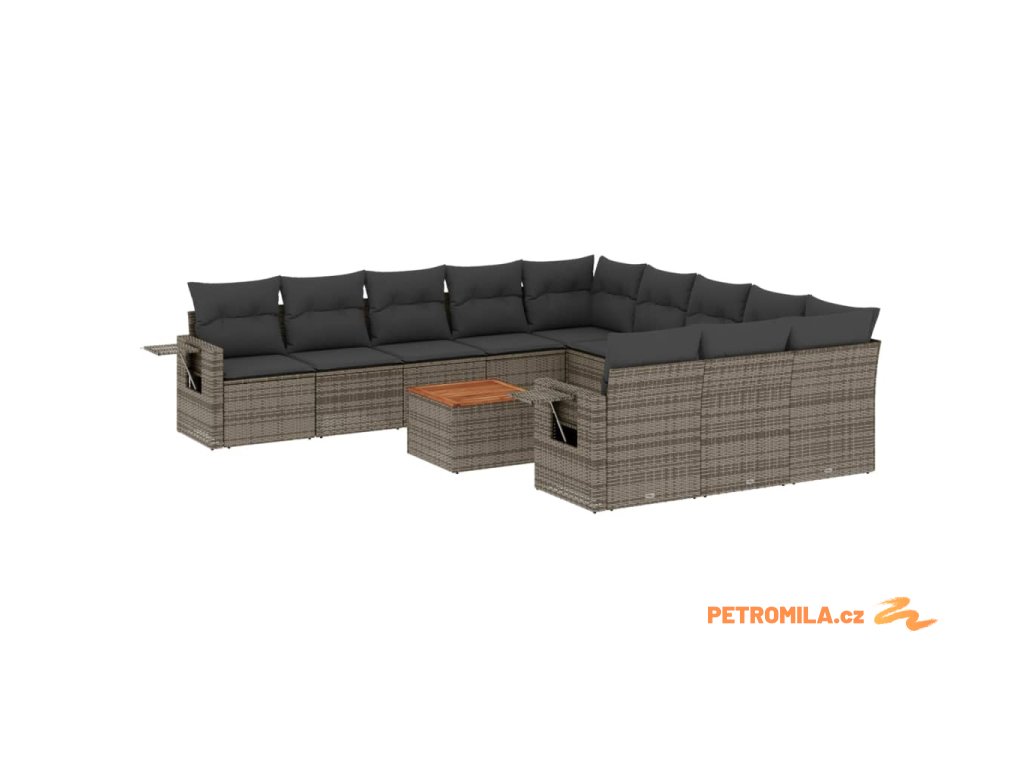 12dílná zahradní sedací souprava s poduškami šedá polyratan