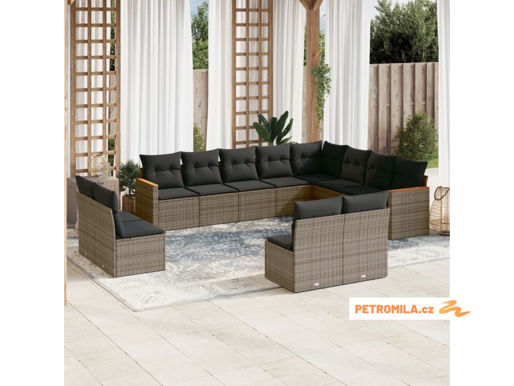 12dílná zahradní sedací souprava s poduškami šedá polyratan