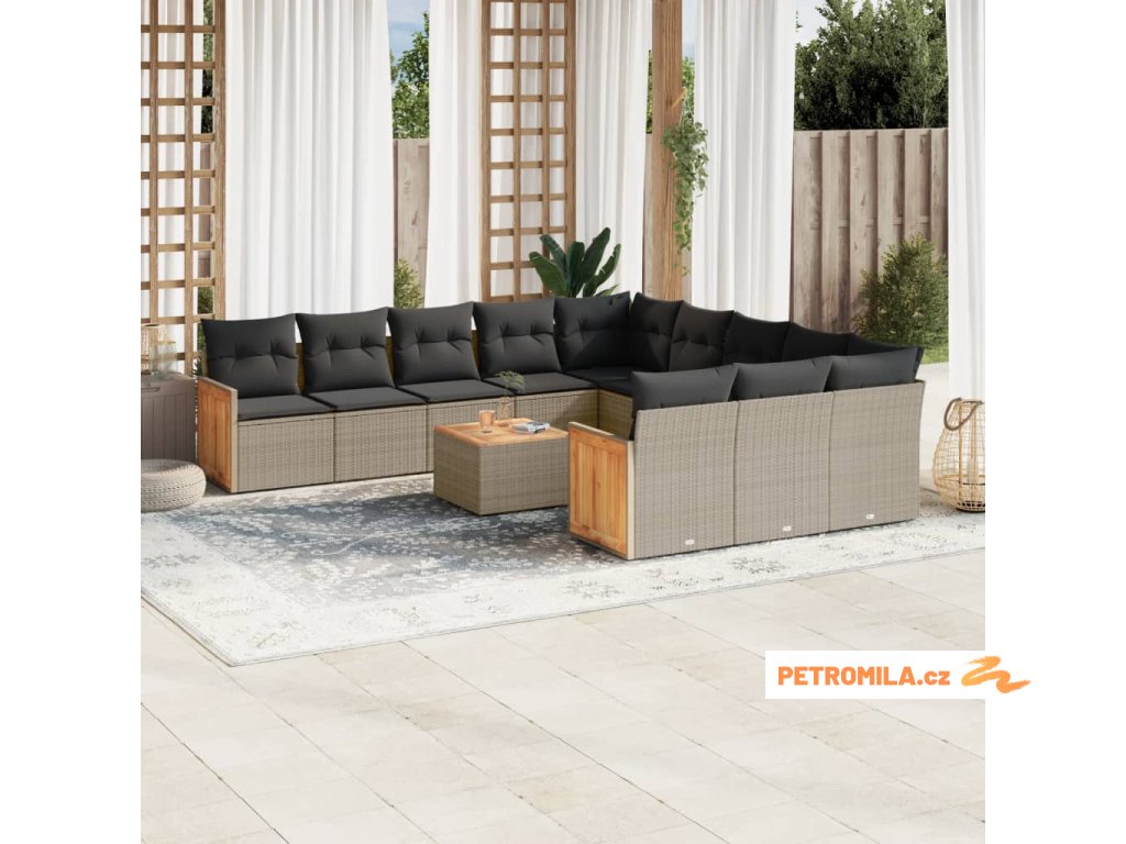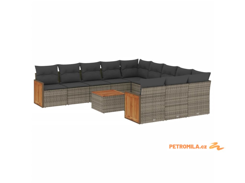 12dílná zahradní sedací souprava s poduškami šedá polyratan