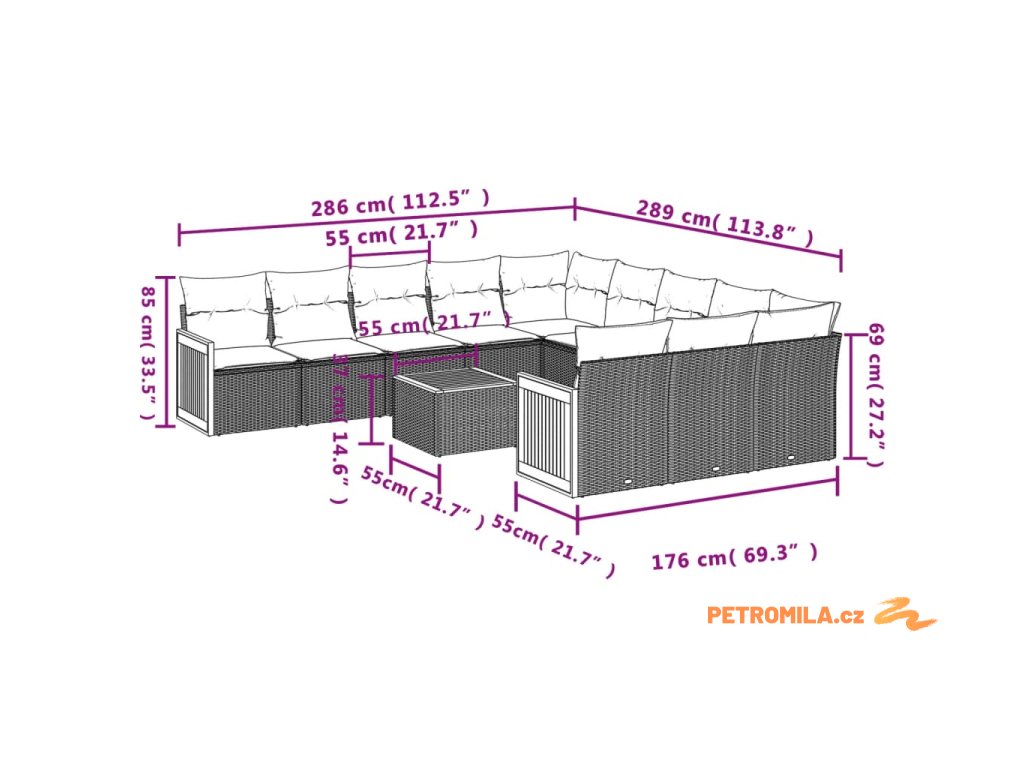 - Rozměry podušky na sedák: 55 x 55 x 3 cm (Š x H x T)