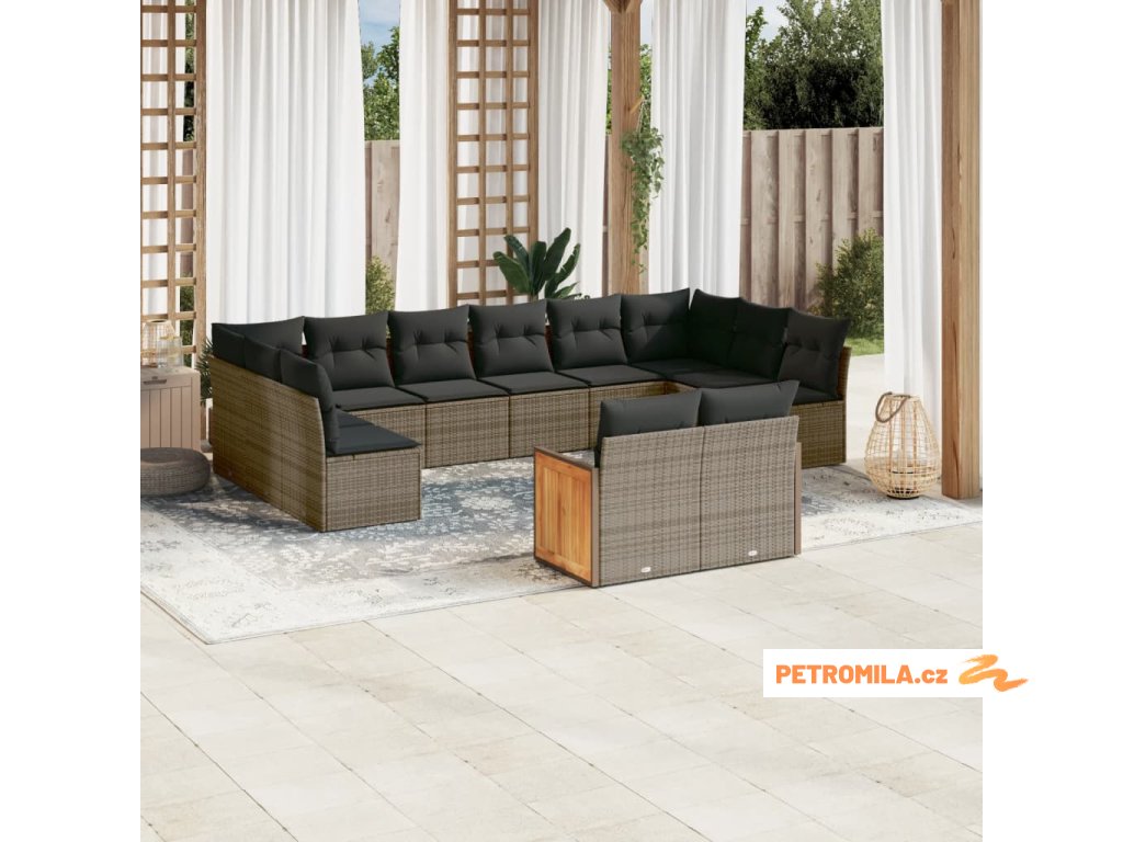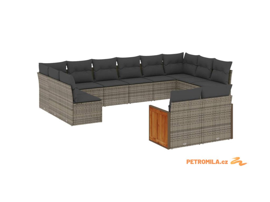 12dílná zahradní sedací souprava s poduškami šedá polyratan