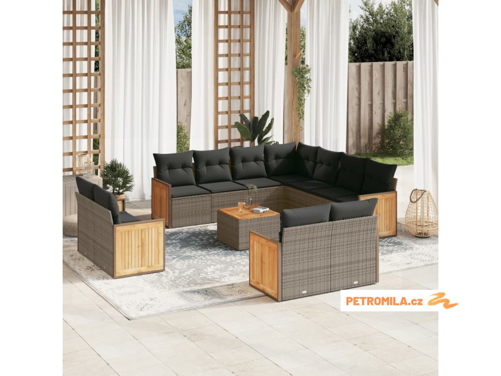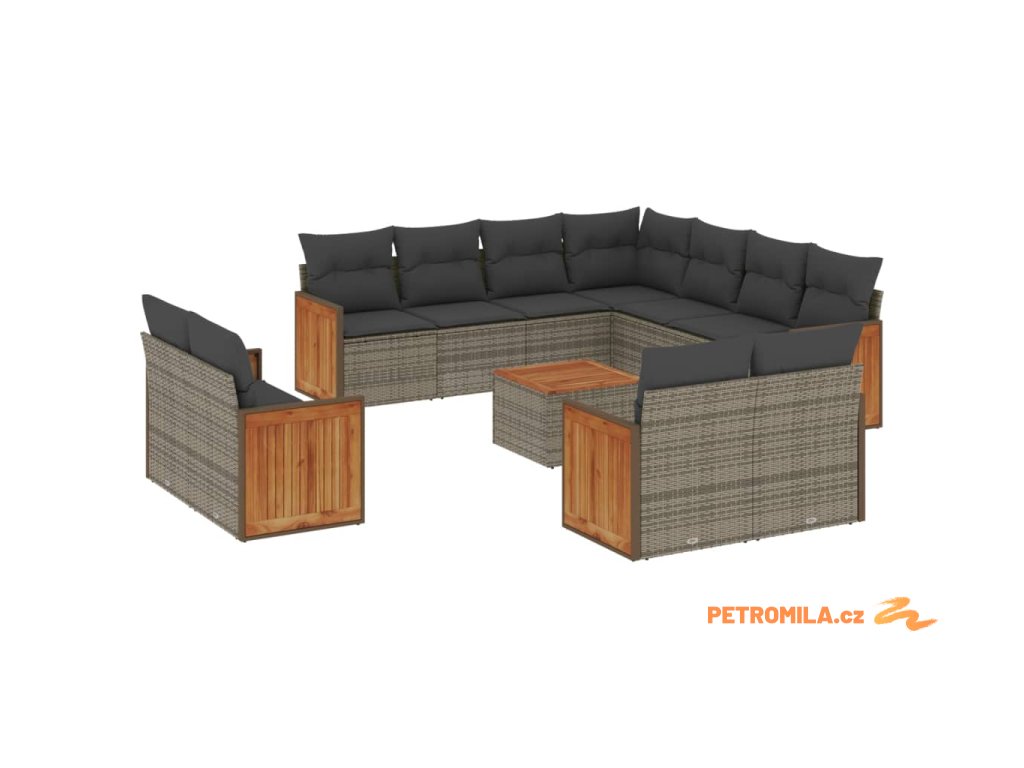 12dílná zahradní sedací souprava s poduškami šedá polyratan