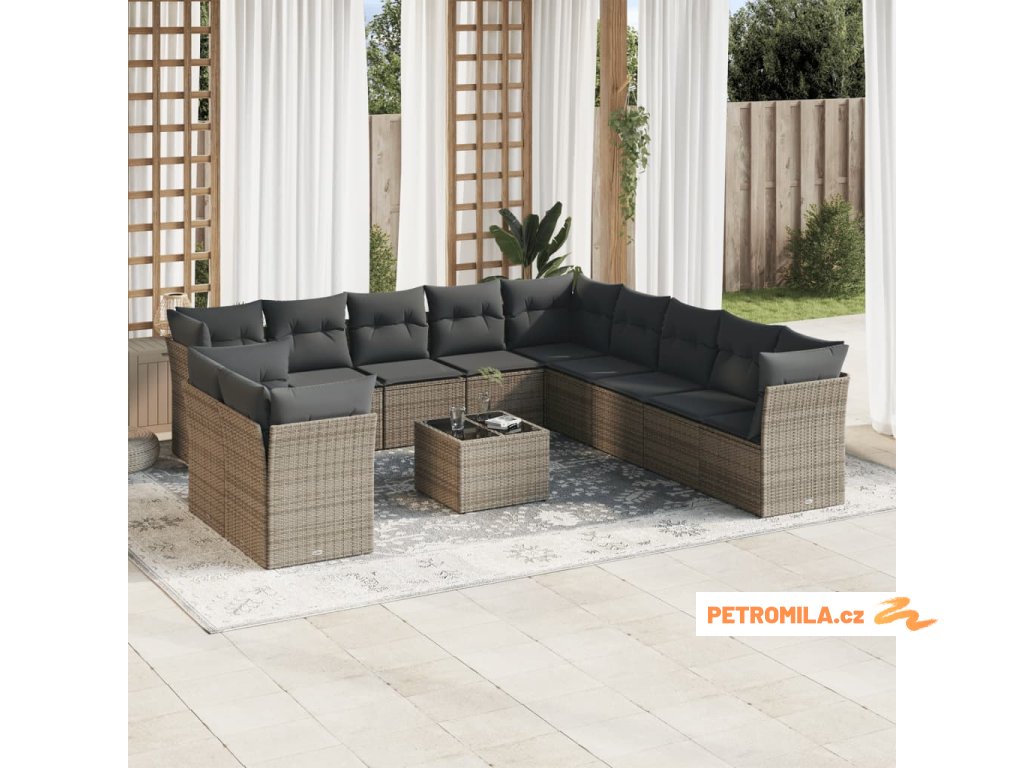 12dílná zahradní sedací souprava s poduškami šedá polyratan
