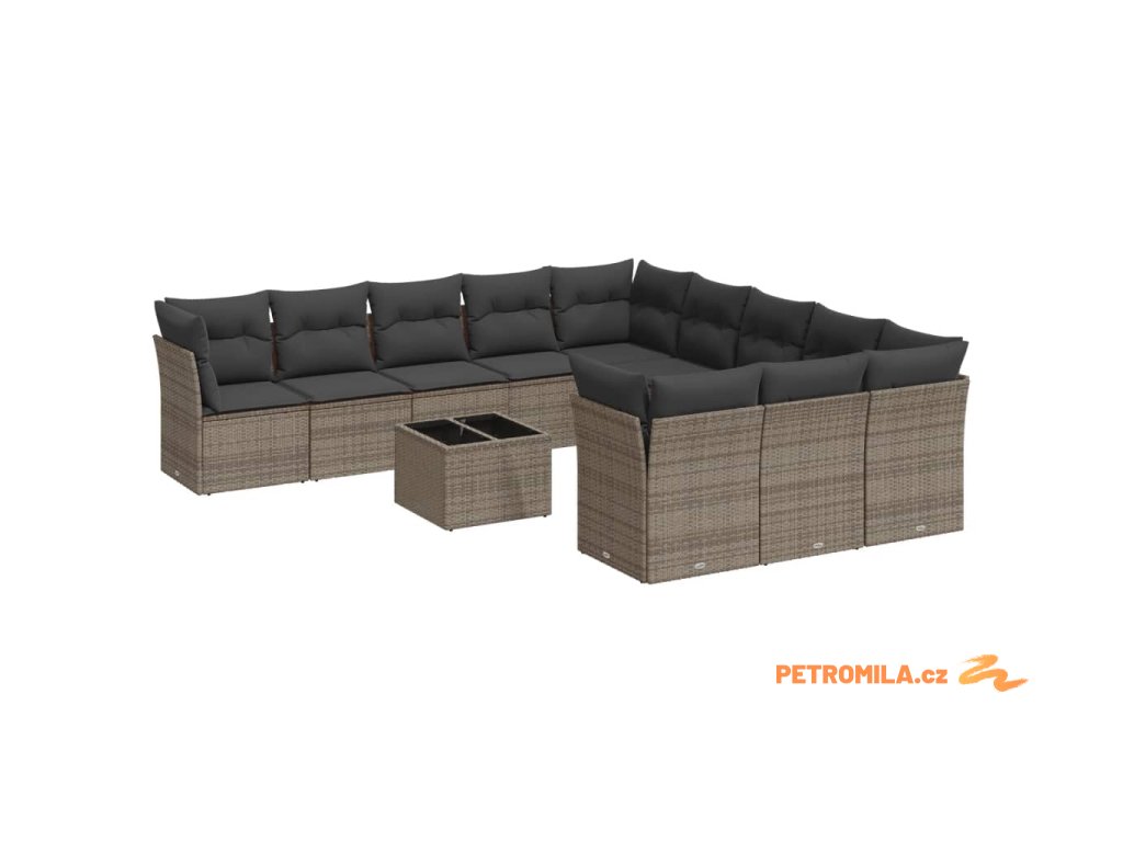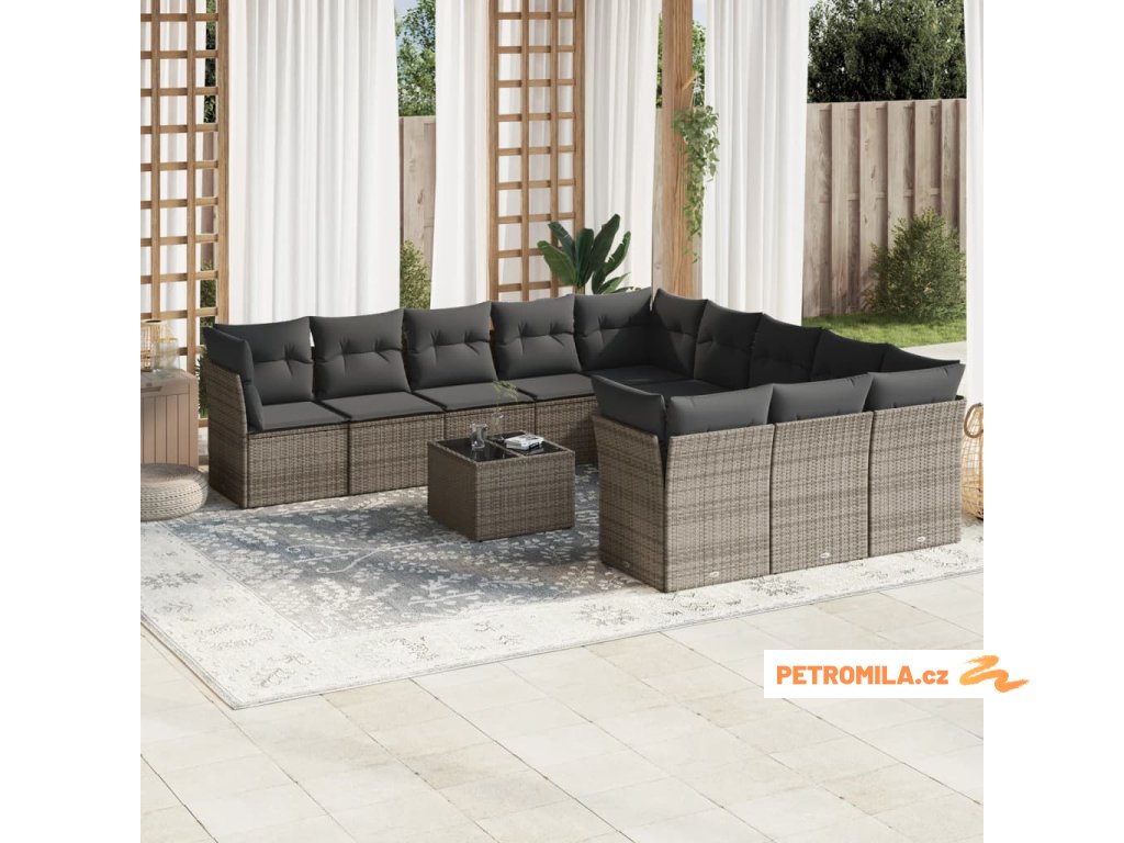 12dílná zahradní sedací souprava s poduškami šedá polyratan
