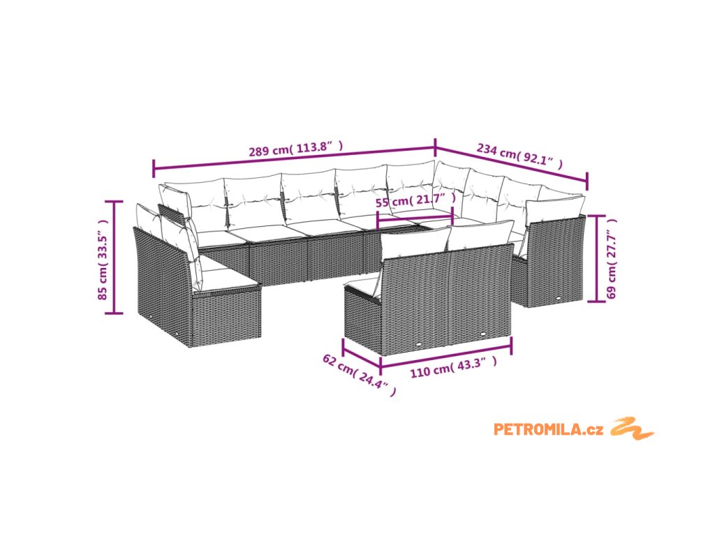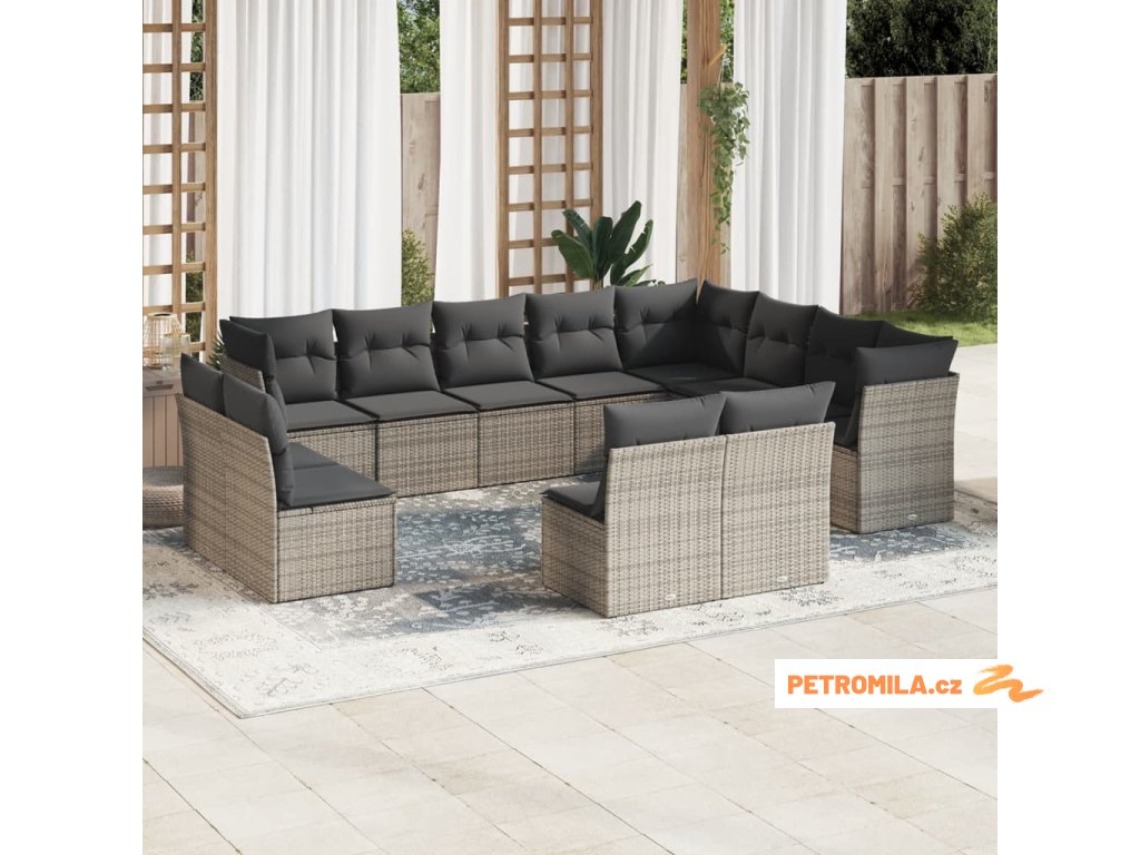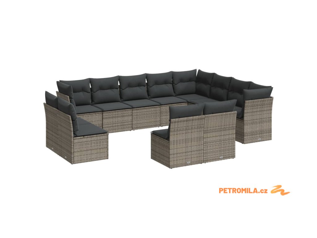 12dílná zahradní sedací souprava s poduškami šedá polyratan