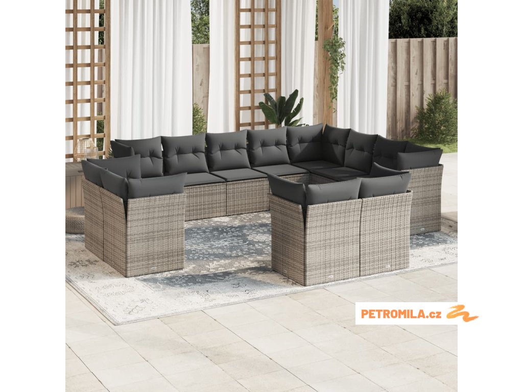 12dílná zahradní sedací souprava podušky světle šedá polyratan