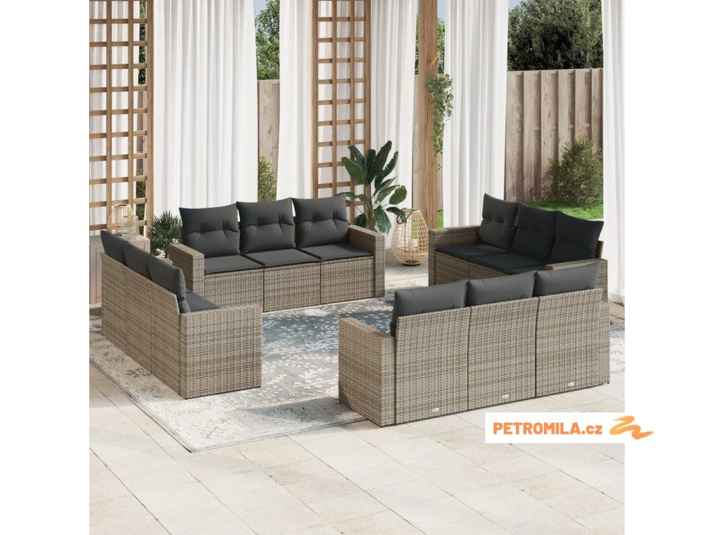 12dílná zahradní sedací souprava s poduškami šedá polyratan