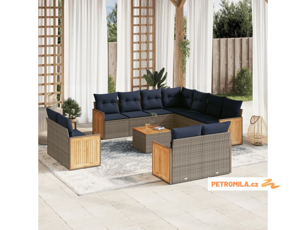 12dílná zahradní sedací souprava s poduškami šedá polyratan