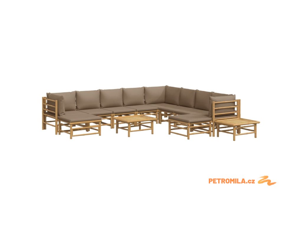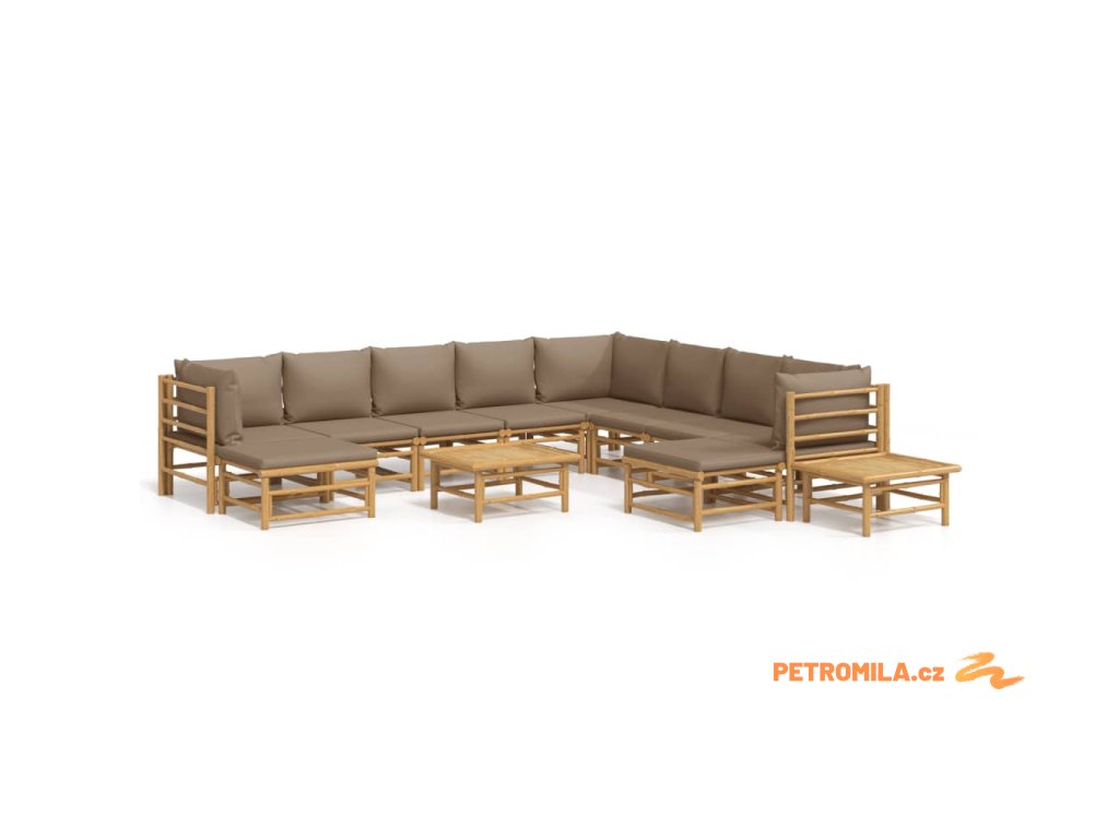 12dílná zahradní sedací souprava s taupe poduškami bambus