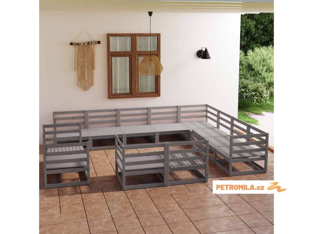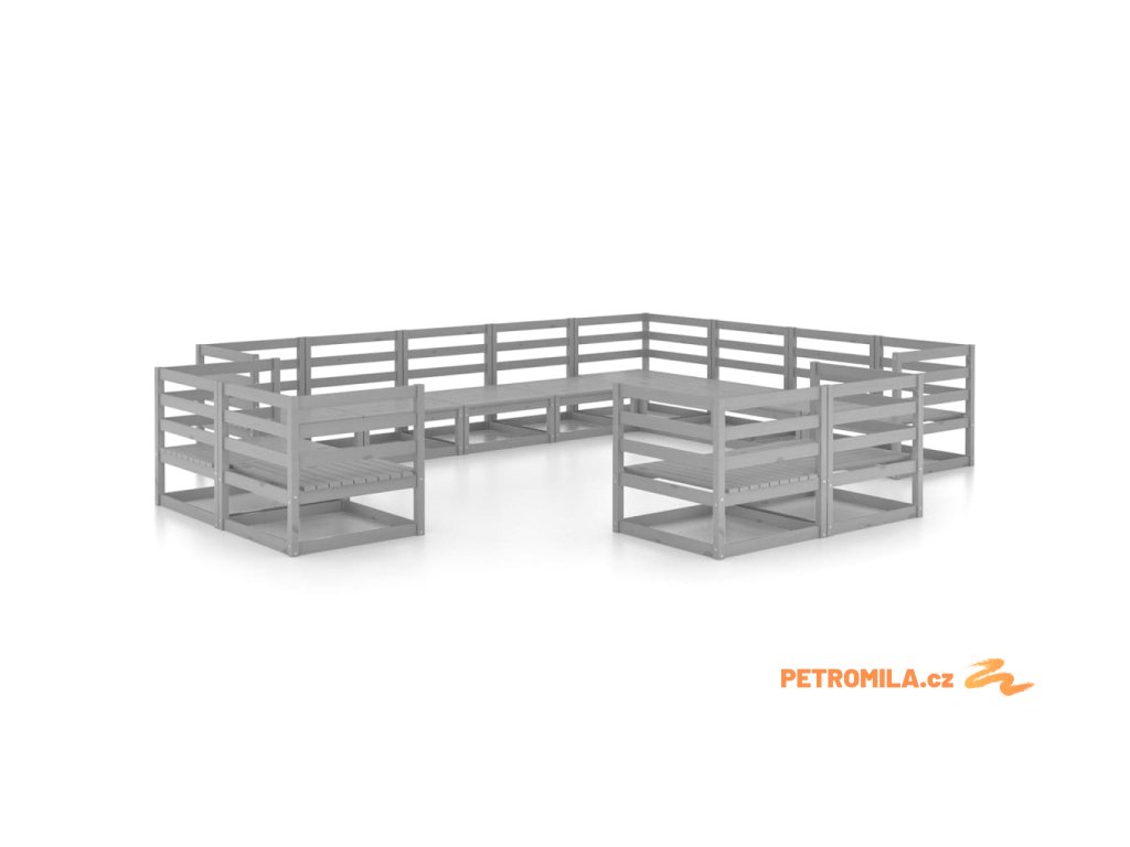 12dílná zahradní sedací souprava šedá masivní borovice