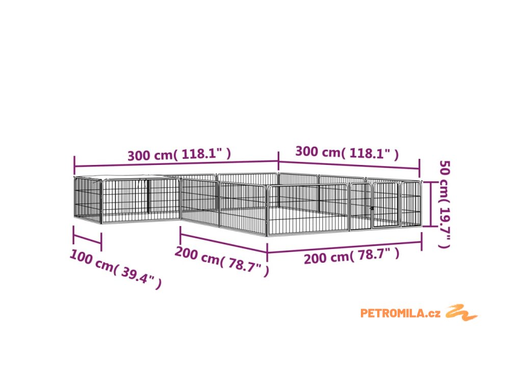 12panelová ohrádka pro psy černá 100 x 50 cm práškovaná ocel