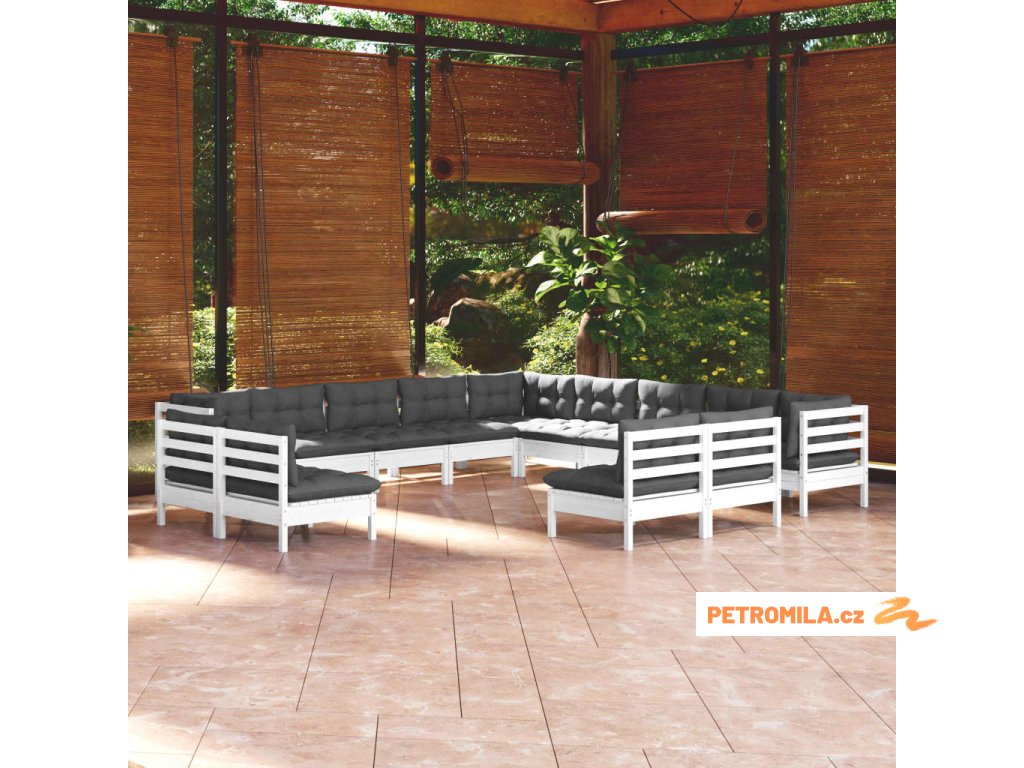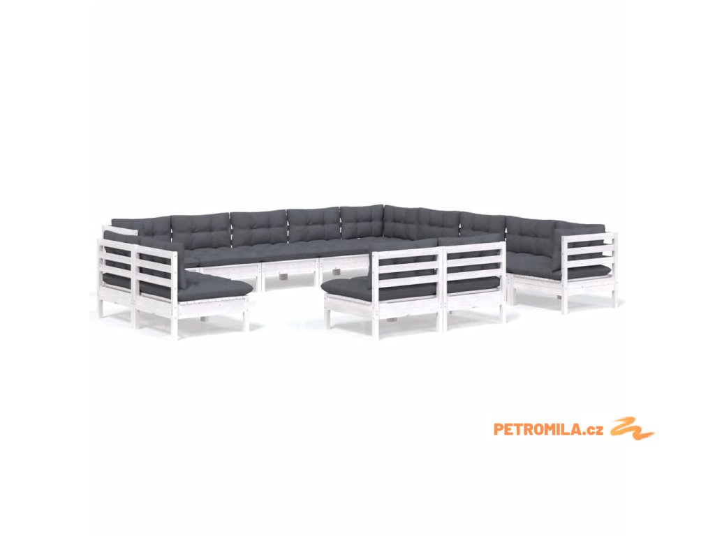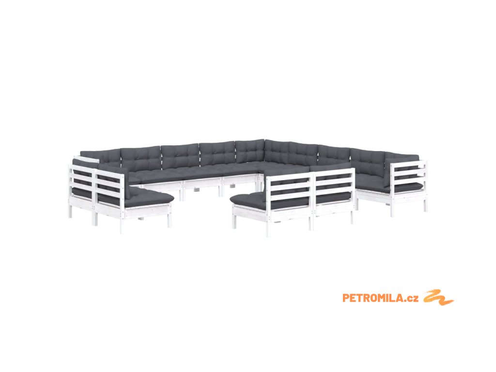 13dílná zahradní sedací souprava podušky bílá masivní borovice