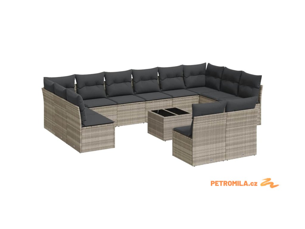 13dílná zahradní sedací souprava podušky světle šedá polyratan
