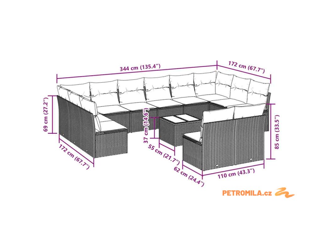 - 12x poduška na sedák s odnímatelným a pratelným potahem
