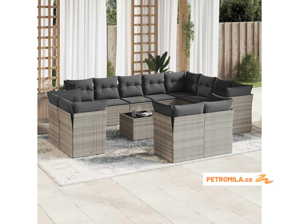 13dílná zahradní sedací souprava podušky světle šedá polyratan