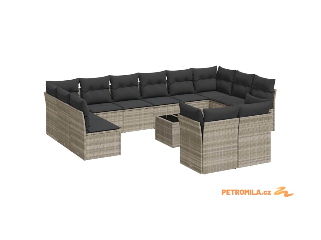 13dílná zahradní sedací souprava podušky světle šedá polyratan