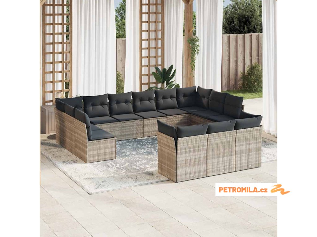 13dílná zahradní sedací souprava podušky světle šedá polyratan