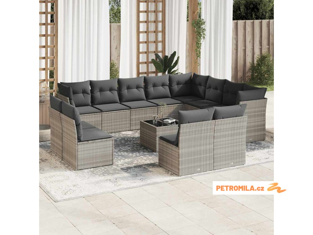 13dílná zahradní sedací souprava podušky světle šedá polyratan