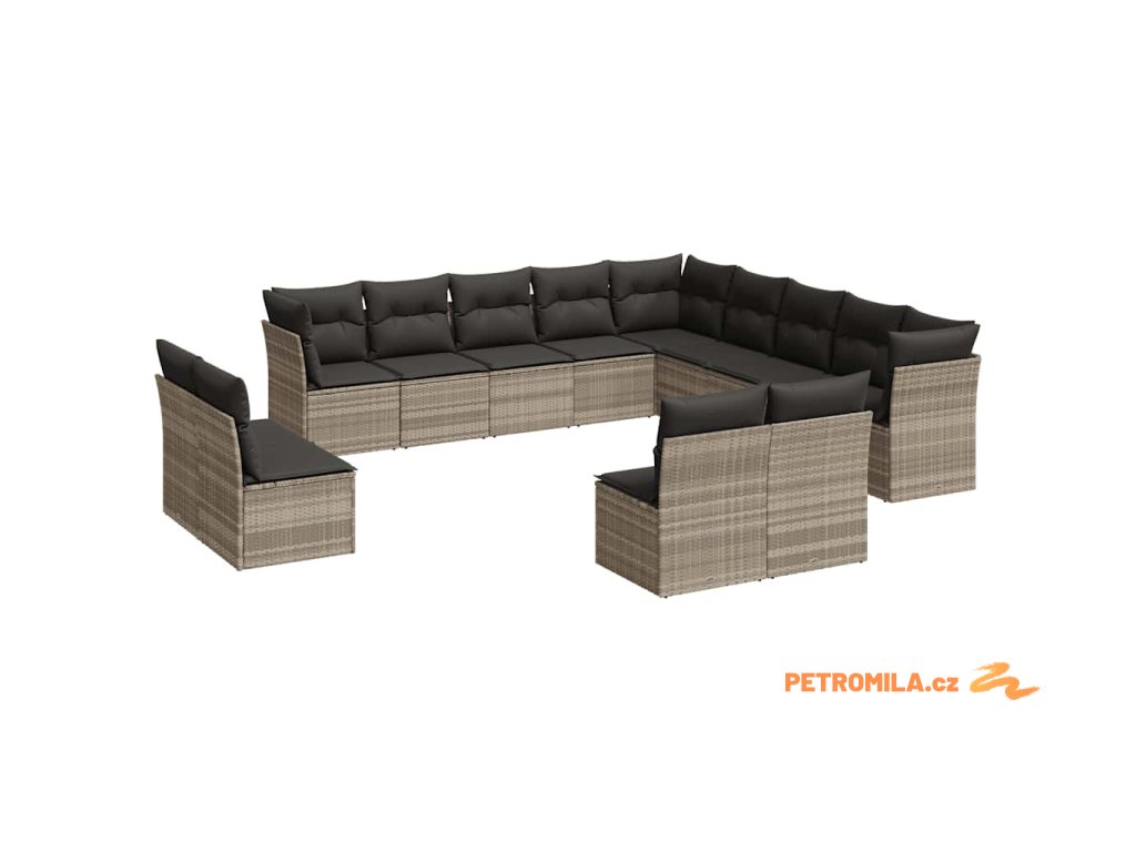13dílná zahradní sedací souprava podušky světle šedá polyratan