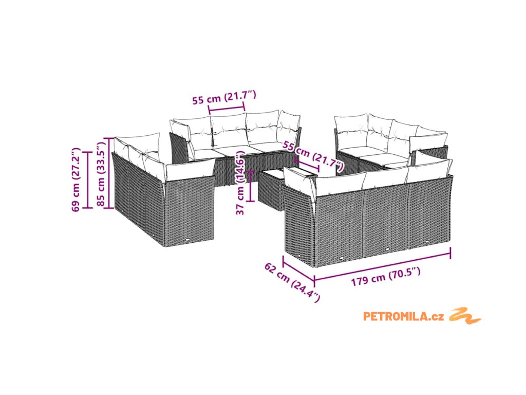 Tato zahradní sedací souprava je dokonalým doplňkem vaší zahrady, terasy nebo dvorku a poskytne vám pohodlné a příjemné místo, kde si můžete povídat s rodinou a přáteli nebo jen tak odpočívat a užívat si pobyt venku.