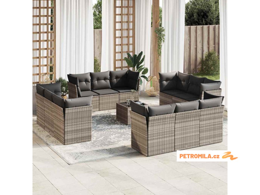 13dílná zahradní sedací souprava podušky světle šedá polyratan