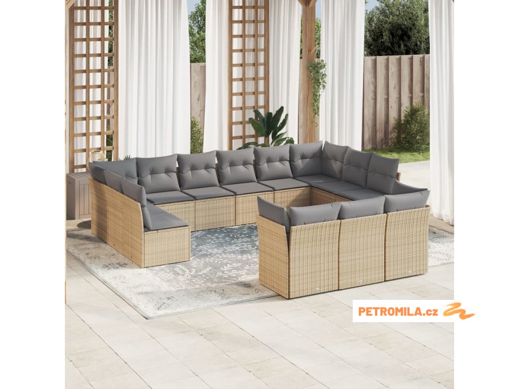 13dílná zahradní sedací souprava s poduškami béžová polyratan