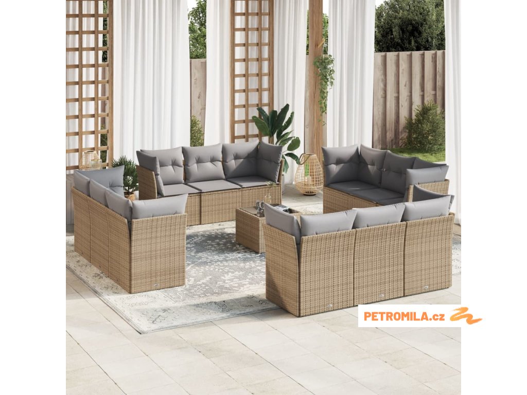 13dílná zahradní sedací souprava s poduškami béžová polyratan
